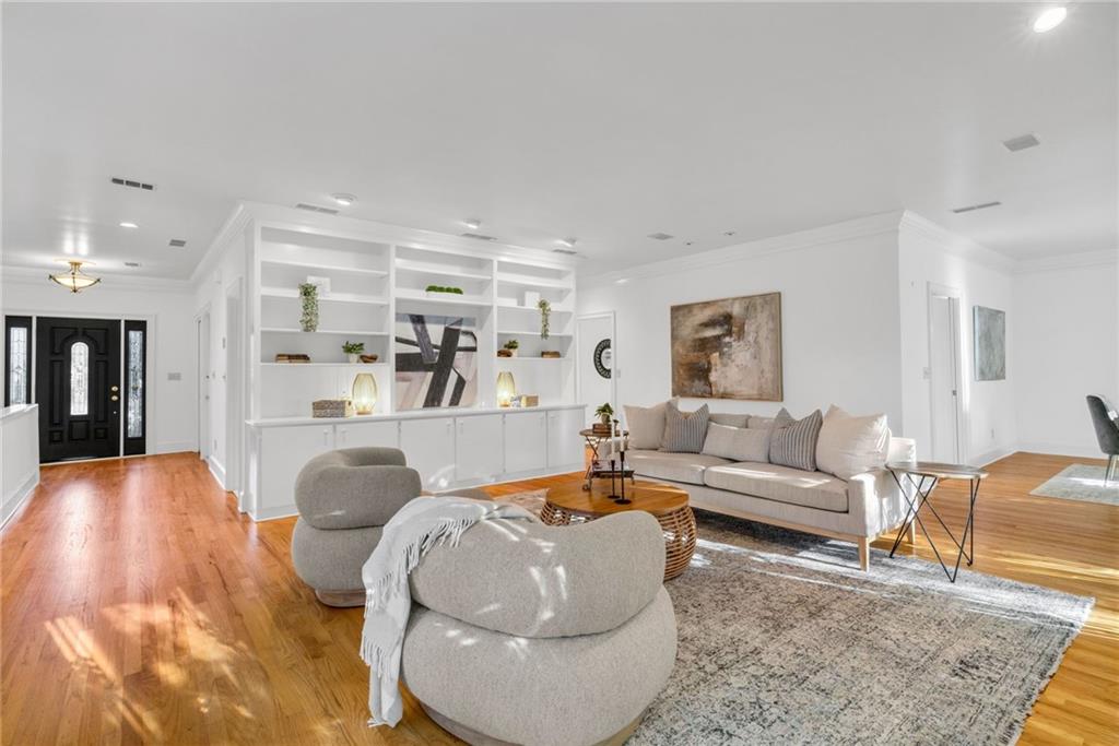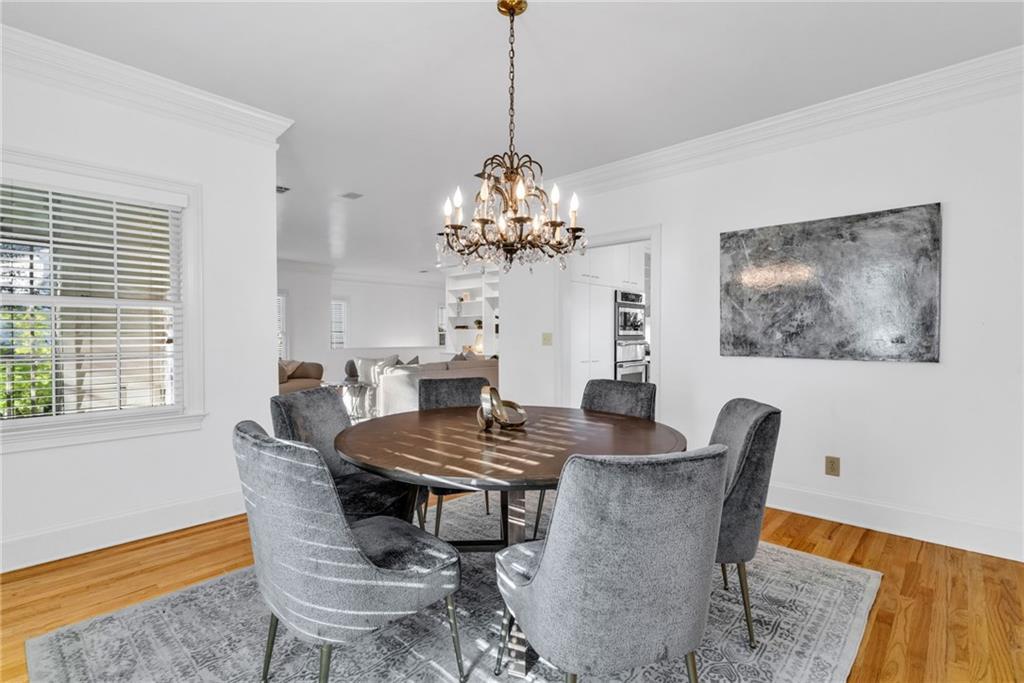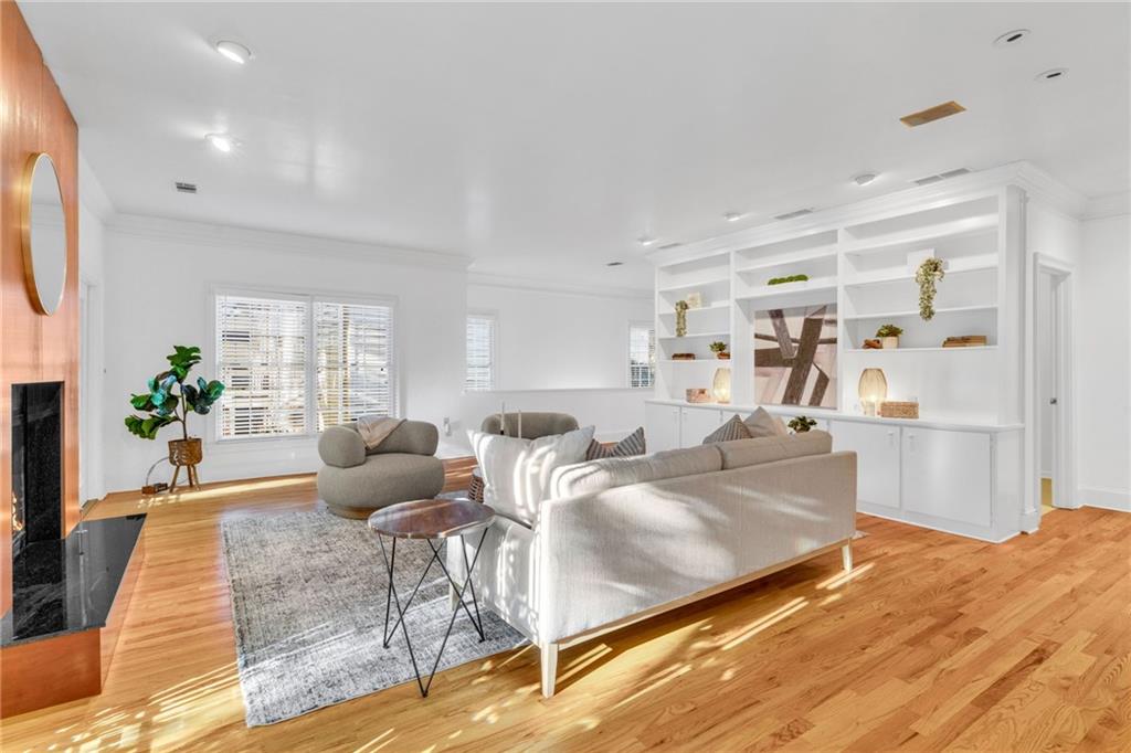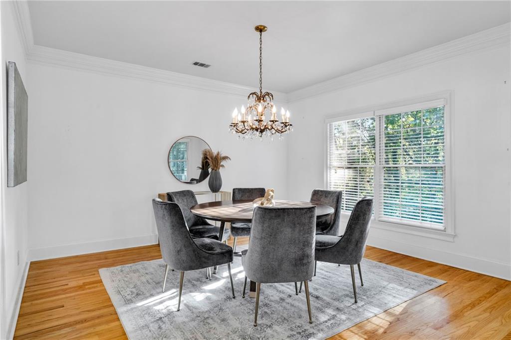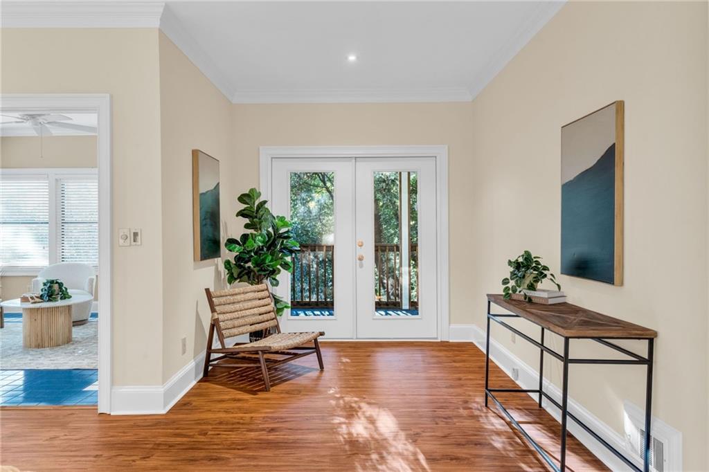 Welcome to this beautiful brick and siding home in the heart of LaVista Park, one of Atlanta's most picturesque and desirable neighborhoods. This timeless residence perfectly blends classic traditional style with the comfort and convenience of intown living. Follow the charming brick pathway through the front courtyard and into a spacious entryway that opens to a bright main level with hardwood floors throughout. The large living room features custom built-in bookcases, recessed lighting, and a granite and cherry wood fireplace surround that adds warmth and sophistication. Double French doors lead to a private screened porch overlooking a wooded backdrop--a peaceful, nature-filled retreat rarely found this close to the city. The separate dining room flows seamlessly into a custom white kitchen designed with both style and function in mind. Enjoy arched windows that flood the space with natural light, a center island with