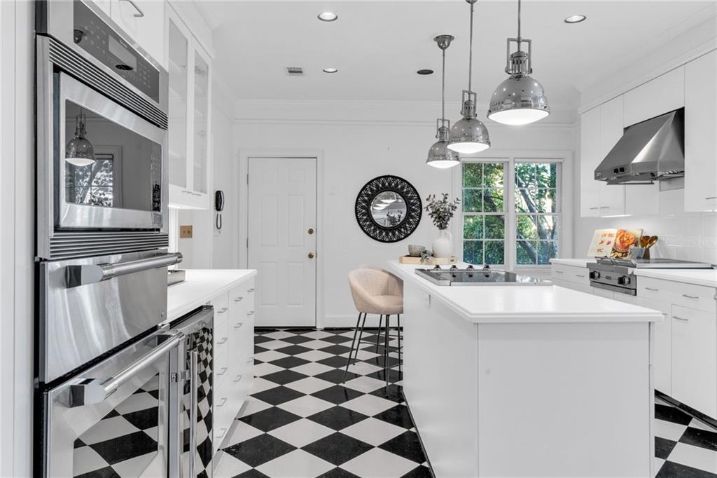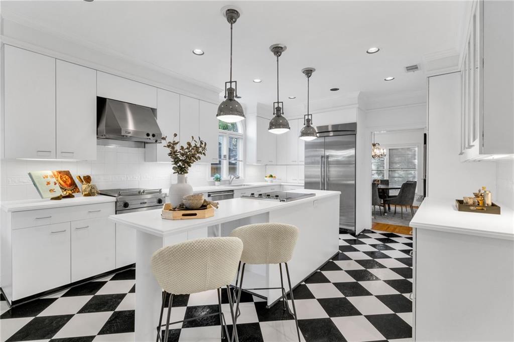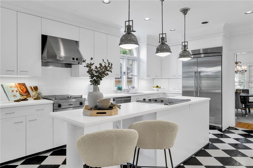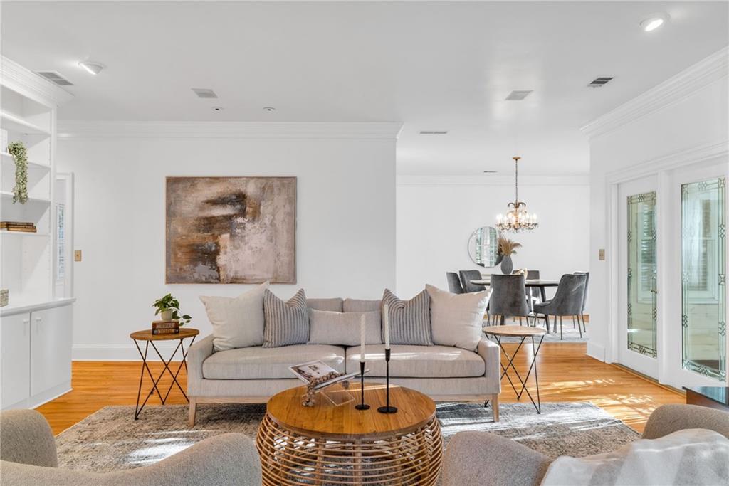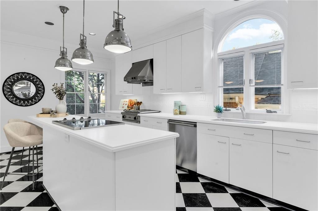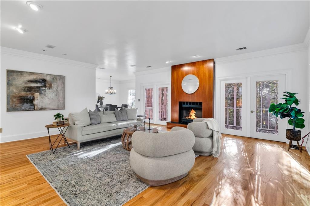 Welcome to this beautiful brick and siding home in the heart of LaVista Park, one of Atlanta's most picturesque and desirable neighborhoods. This timeless residence perfectly blends classic traditional style with the comfort and convenience of intown living. Follow the charming brick pathway through the front courtyard and into a spacious entryway that opens to a bright main level with hardwood floors throughout. The large living room features custom built-in bookcases, recessed lighting, and a granite and cherry wood fireplace surround that adds warmth and sophistication. Double French doors lead to a private screened porch overlooking a wooded backdrop--a peaceful, nature-filled retreat rarely found this close to the city. The separate dining room flows seamlessly into a custom white kitchen designed with both style and function in mind. Enjoy arched windows that flood the space with natural light, a center island with